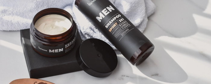 A Linha Men foi desenvolvida para os homens que adoram expressar sua vitalidade e elegância. A fragrância Sport é amadeirada, marcante e energética, trazendo mais intensidade ao dia a dia. O Shampoo 3x1 pode ser usado em cabelos, barbas e corpo; enquanto a Pomada Modeladora é para uso em cabelos, barbas e bigodes.