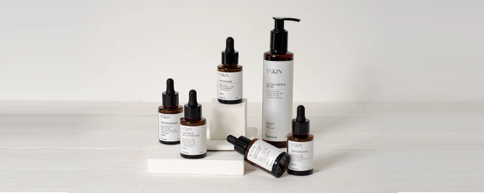 Para manter a rotina de skincare com praticidade e eficácia, a Via Aroma apresenta a linha de Dermocosméticos V.Skin. São produtos que auxiliam no tratamento, prevenção e manutenção da beleza e saúde da pele, com séruns específicos para cada necessidade e gel de limpeza que remove impurezas e prepara para aplicação dos séruns ou outros tratamentos. Todos os produtos são veganos, hipoalergênicos, dermatologicamente testados, possuem alta concentração de ativos e óleo essencial na fórmula, e ainda são livres de sulfatos, triclosan, parabenos, petrolatos e fragrância. Navegue pelo nosso menu e confira os detalhes de cada uma das apresentações de VS.kin - A solução perfeita para todos os tipos de pele.