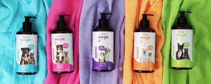 A linha de Shampoos One Pet Via Aroma foi criada para garantir bem-estar aos pets com fórmulas suaves, pH neutro, espuma cremosa e fragrâncias marcantes. Dermatologicamente testados, os produtos proporcionam limpeza, hidratação e perfumação, cuidando da pelagem com segurança.Disponível em versões para diferentes necessidades:Macho: hidratação e fragrância amadeirada sofisticada.Fêmea: toque aveludado e perfume doce com notas de baunilha.Filhotes: fórmula delicada com cheirinho suave e floral.Pelos Claros: realce do brilho e aroma cítrico-floral.Pelos Escuros: brilho intenso com fragrância floral ambarada.Perfeito para uso doméstico ou profissional, é a escolha ideal para um banho cheio de carinho, cuidado e personalidade.